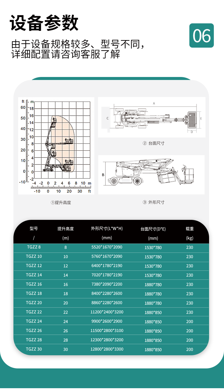 全自行曲臂升降機性能參數